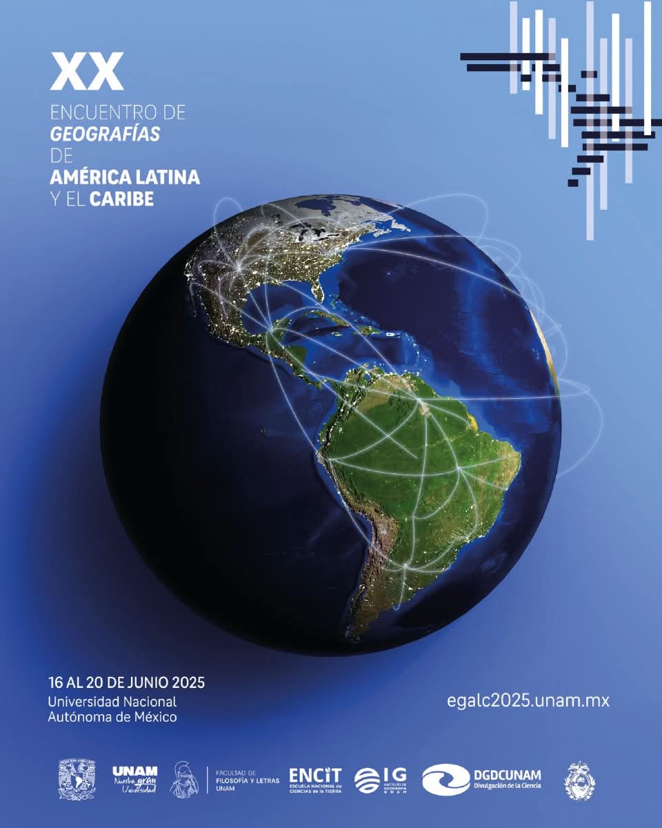 El XX Encuentro de Geografías de América Latina y el Caribe (EGALC) se llevó a cabo del 16 al 20 de junio de 2025 en la Facultad de Filosofía y Letras, en el campus Ciudad Universitaria de la Ciudad de México. Incluyó, en los días previos, visitas a Teotihuacán y a Xochimilco, y el fin de semana posterior a Taxco, Guerrero y a Mineral del Chico, Hidalgo. Además, se realizaron recorridos guiados por ese monumento artístico y patrimonio mundial de la UNESCO que es el maravilloso campus central de Ciudad Universitaria. También visitamos los laboratorios, bibliotecas y mapotecas del Instituto de Geografía y el espectacular Universum.