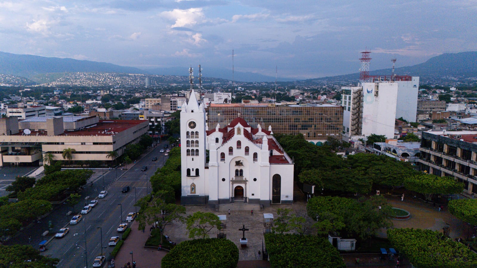 Es domingo y de repente irrumpen las campanas de la Catedral Metropolitana de San Marcos que destella con su blancura y domina, con su elegancia, en el flanco sur el centro de la ciudad, la plaza que se extiende de sur a norte dividida por la Avenida Central y acotada sobre el poniente por la Calle Central. Es la Catedral que tuvo sus inicios como templo en 1560, cuando se funda formalmente Tuxtla con sus cuatro barrios iniciales, teniendo como centro la construcción de la Iglesia Católica, coinciden los históricos cronistas de la ciudad José Luis Castro Aguilar, Roberto Chanona y José María López Sánchez.